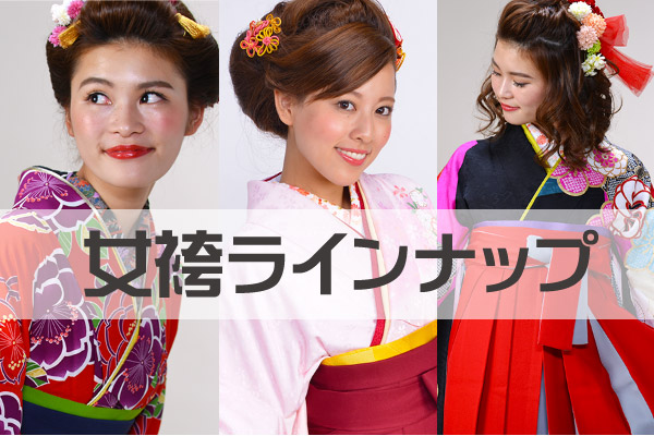 成人式の振袖・卒業式の女袴・訪問着・留袖・紋付き袴など晴れの和装を豊富な衣裳でコーディネートしています。